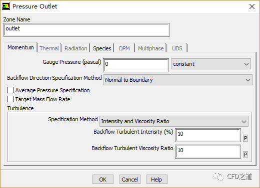 双击模型树节点Boundary Conditions > outlet弹出边界设置对话框