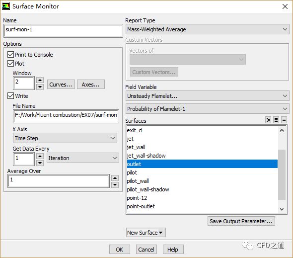 检测出口outlet的Probability of Flamelet-1,如下图所示