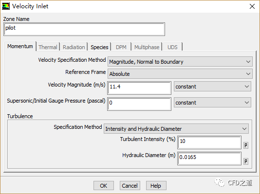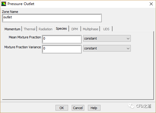Species设置Mean Mixture Fraction为0,表示该边界全为Oxid