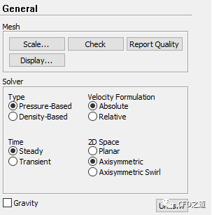 双击模型树节点General,右侧面板选择选项Axisymmetric
