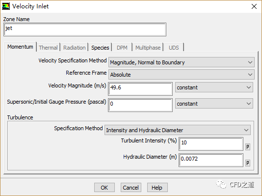 双击模型树节点Boundary Conditions > jet弹出jet边界设置对话框