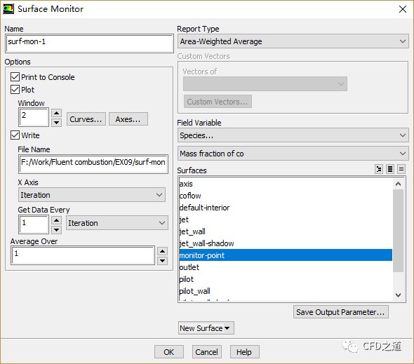 设置监测点(x,y)=(0.7,0.01),监测Area-Weighted Average CO
