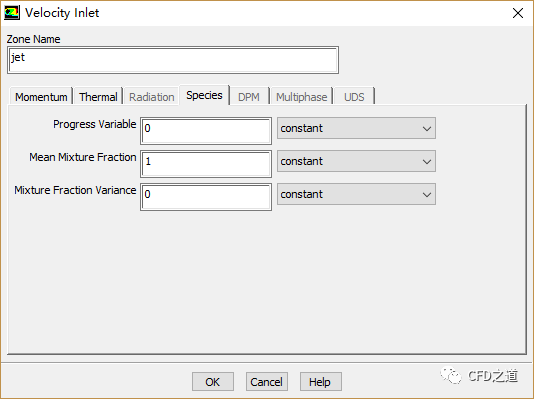 jet:Mean Mixture Fraction = 1; Progress Variable = 0