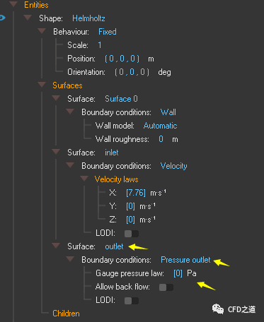 设置Boundary Conditions为Pressure outlet,并设置Gauge pressure law为0