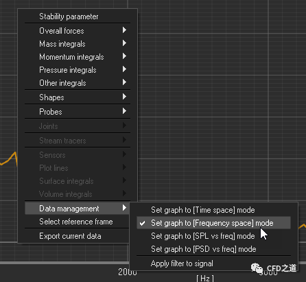在Function Viewer点击鼠标右键,选择菜单项Data management → Set graph to [Frequency space] mode显示静压频域分布
