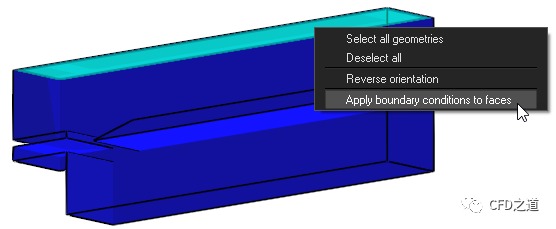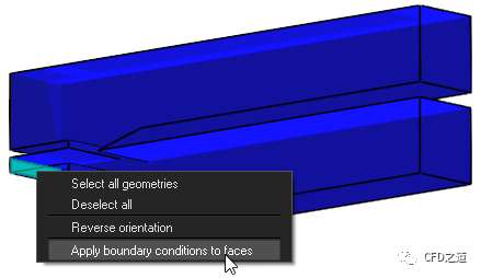 选中入口表面,点击右键菜单Apply boundary conditions to faces