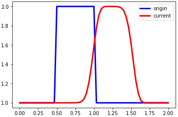 在前面【Python-CFD】02:线性对流方程中,所采用的计算参数是固定的(具有固定的时间步长和网格尺寸),下面尝试着更改这些参数,看看对于计算结果是否存在影响。