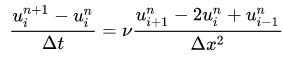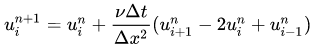 u[i] = un[i]+ nu *dt /dx**2 * (un[i+1] -2 * un[i] + un[i-1])
