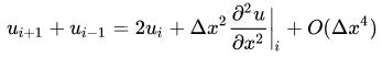 与前面方程不同的地方在于此方程包含二阶导数,因此首先对二阶导数进行离散。