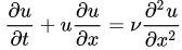 该方程同时包含了对流项与扩散项,式中u为速度,ν为介质粘度。