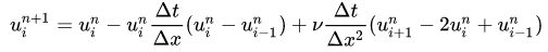 u[i] = un[i] - un[i] * dt / dx *(un[i] - un[i-1]) + nu * dt / dx**2 *