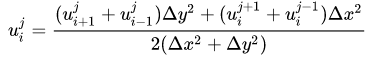 u[i,j] = ((u[i+1,j]+ u[i-1,j]) * dy2 + + (u[i,j+1]+u[i,j-1])* dx2) /(2*(dx2+dy2))