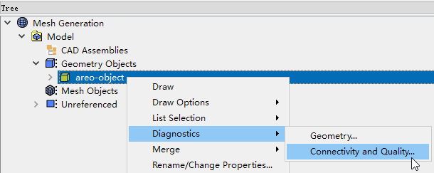 右键选择节点aero-object,选择右键菜单Diagnostics → Connectivity and Quality...