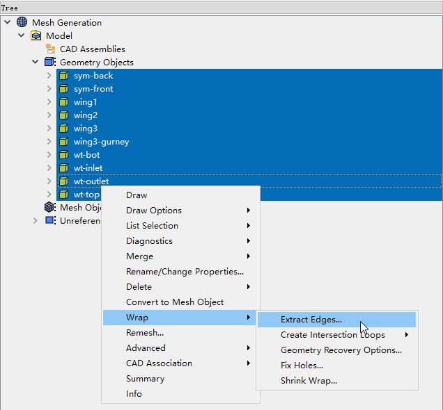 选择Geometry Objects节点下的所有项,点击鼠标右键,选择菜单Wrat → Extract Edges...