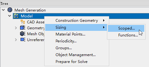 右键选择模型树节点Model,选择右键菜单Sizing → Scoped...弹出尺寸定义对话框