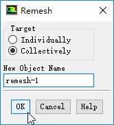 弹出菜单中设置New Object Name为remesh-1,点击OK按钮进行网格重构
