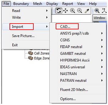 Fluent Meshing可以通过菜单File → Import → CAD…导入CAD几何模型。