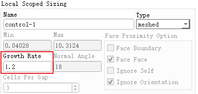 Meshed类型允许用户基于已有尺寸来设定新的网格尺寸,该方法只需要设定参数Growth Rate。