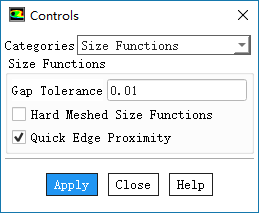 小技巧:当对含有大量细小特征边的几何使用Proximity尺寸功能式,用户可以通过激活Quick Edge Proximity选项来加快计算并降低内存消耗。通过菜单Display → Control,选择Categories为Size Functions,并激活选项Quick Edge Proximity来启用该选项。