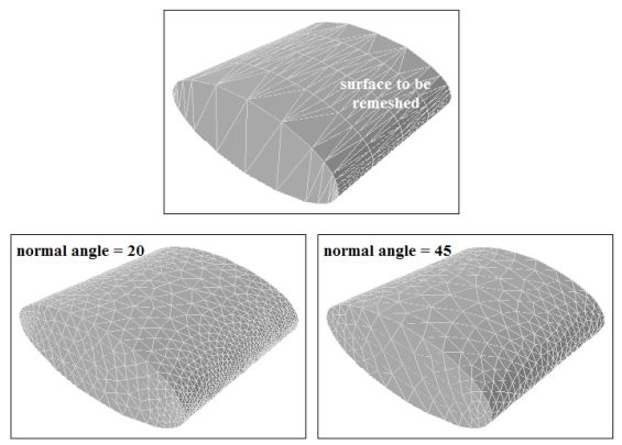 下图描述了设定不同的Normal Angle对网格节点布置的影响。