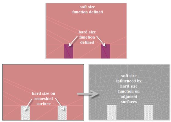 size Field是根据定义的size function和/或Scoped Sizing计算得到的。用户可以基于size field重新划分面和边上的网格。