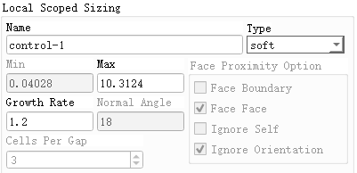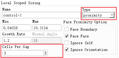 与Curvature类型相比,proximity不需设置Normal Angle,多出需要设置的参数为Cells Per Gap,该参数指定Gap中需要划分的节点数量。