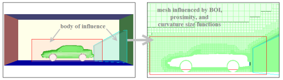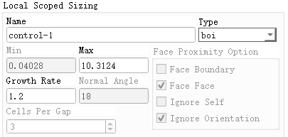 Body of Influence(BOI)方法允许用户指定影响网格尺寸的几何体(即用于调整大小控制的区域)。最大的网格尺寸等于所指定的影响几何体的网格尺寸,最小尺寸将根据其他尺寸功能的影响来确定。