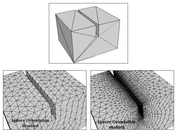 下图所示可以看出忽略与否面法向而导致网格分布的不同。