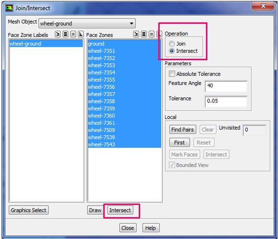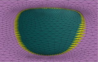 Intersect方法使用与此类似,如下图所示为利用Intersect方式划分轮胎与地面接触位置网格。