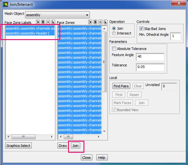 选择弹出菜单项Join/Intersect…弹出设置对话框