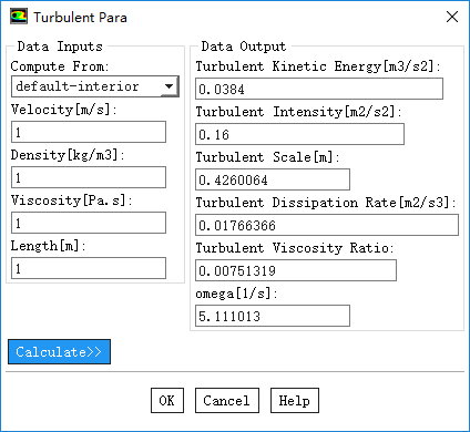 今天来点儿有用的,利用GUI来计算湍流参数,界面如下图所示。
