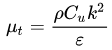 式中,经验常数Cu=0.09,k为湍动能,epsilon为湍流耗散率