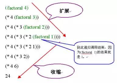 我们可以将下面的调用(factoral 4),即4的阶乘的运算过程图示如下: