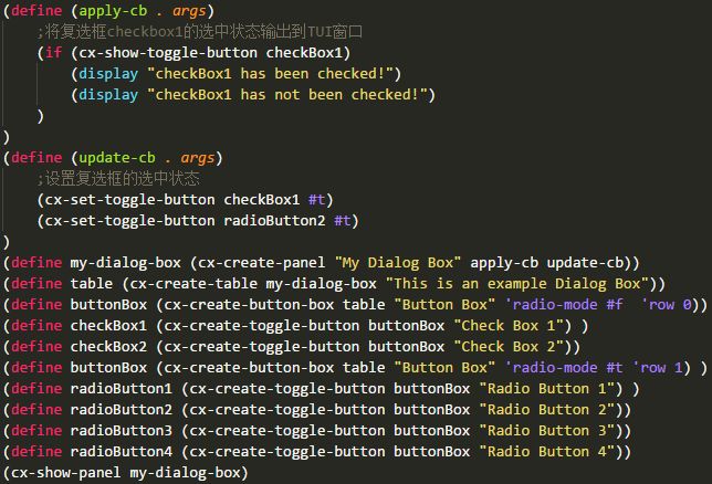 复选框与单选框均可以利用函数cx-set-toggle-button来设置按钮的选择状态,利用函数cx-show-toggle-button来获取选择状态。
