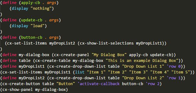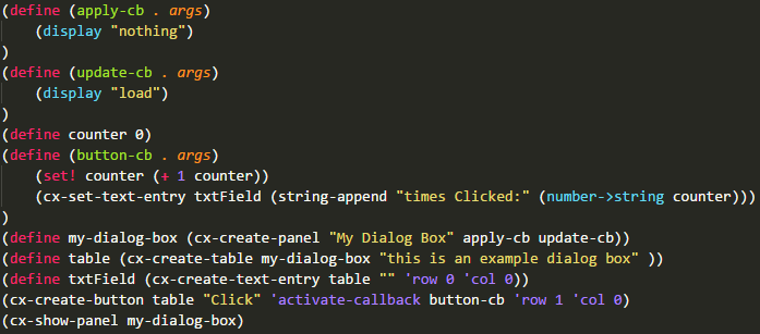 Button通常用于执行一系列指令。采用函数cx-create-button创建。