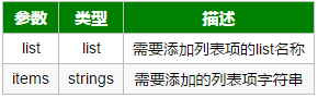 该函数用于为列表设置列表项。其用法为: