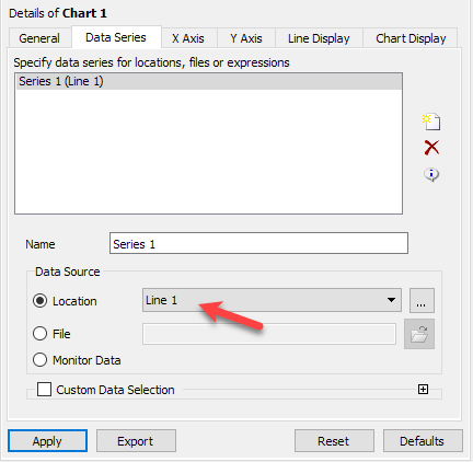 属性窗口中,设置Data Series标签页下Location为Line 1