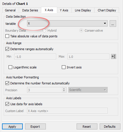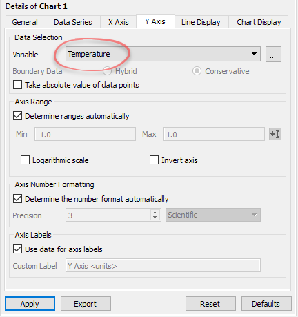设置Y Axis标签页下设置Variable为Temperature,点击Apply按钮绘制曲线图