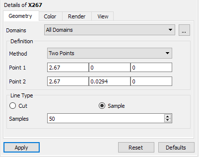 属性定义面板中设置起始点坐标分别为(2.67 0 0)及(2.67 0.0294 0),点击Apply按钮创建line