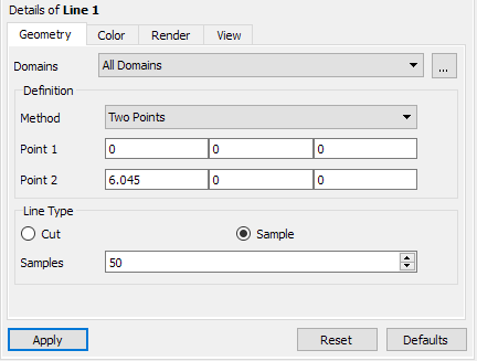 创建line,采用默认命名line-1,起始点坐标分别为(0 0 0)及(6.045 0 0)