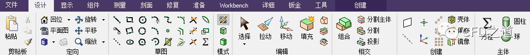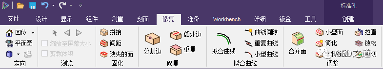 工具栏:采用Ribbon形式组织的工具栏,包含各种用于几何处理的工具按钮