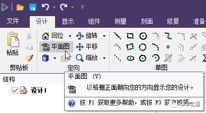 选择按钮设计 → 平面图将草图平面正对着屏幕