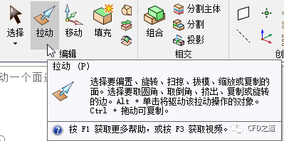 SCDM中的建模主要以拉动为主。该功能按钮位于设计 → 编辑中。