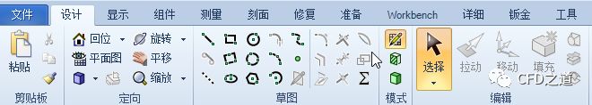 SCDM的所有与建模相关的功能按钮位于设计标签页下。