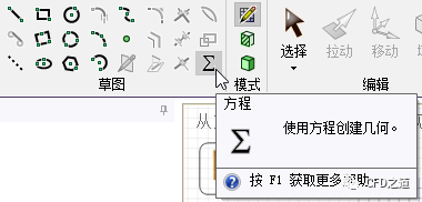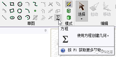 选择草图中方程按钮