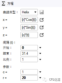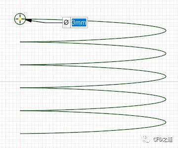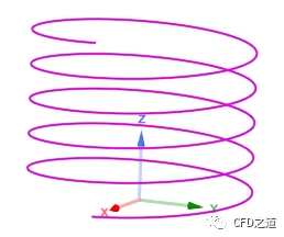 注意:SCDM生成螺旋线存在缺陷。这里31.4既代表了螺旋线的高度,还表示螺旋线的圈数为31.4/6.28=5圈。在这里并不能独立定义螺距和圈数。