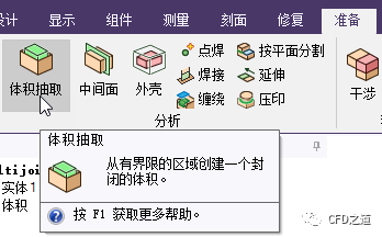 内流计算域抽取可通过点击按钮准备 → 体积抽取来开启。
