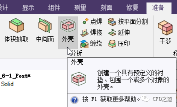 SCDM中外流场计算域提取一般可以采用准备 → 外壳功能按钮来实现。