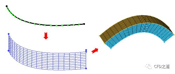如下图所示将线网格拉伸形成面网格,再将面网格拉伸形成体网格。