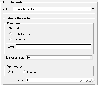 选择Extrude by vector可采用沿向量拉伸方式。通过向量指定拉伸方向。